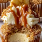 Decadent banana cheesecake cupcakes filled with a creamy center, topped with fluffy cream cheese frosting, crushed nuts, and a rich caramel drizzle. Perfect for summer parties, casual desserts, or gifting.