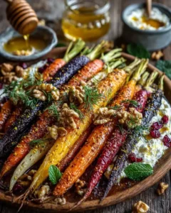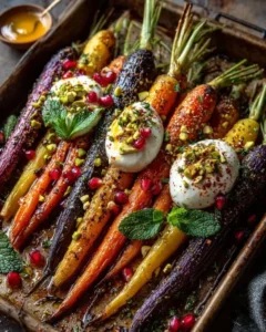 Sweet Honey Roasted Carrots with Creamy Burrata and Pomegranate