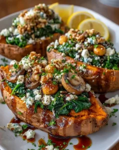 Easy Mediterranean Loaded Sweet Potatoes with Garlic Spinach