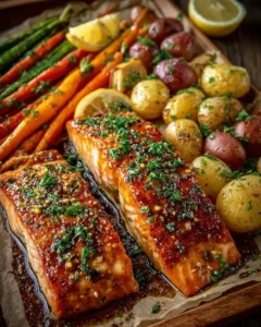 Easy Maple Dijon Glazed Salmon with Roasted Vegetables
