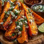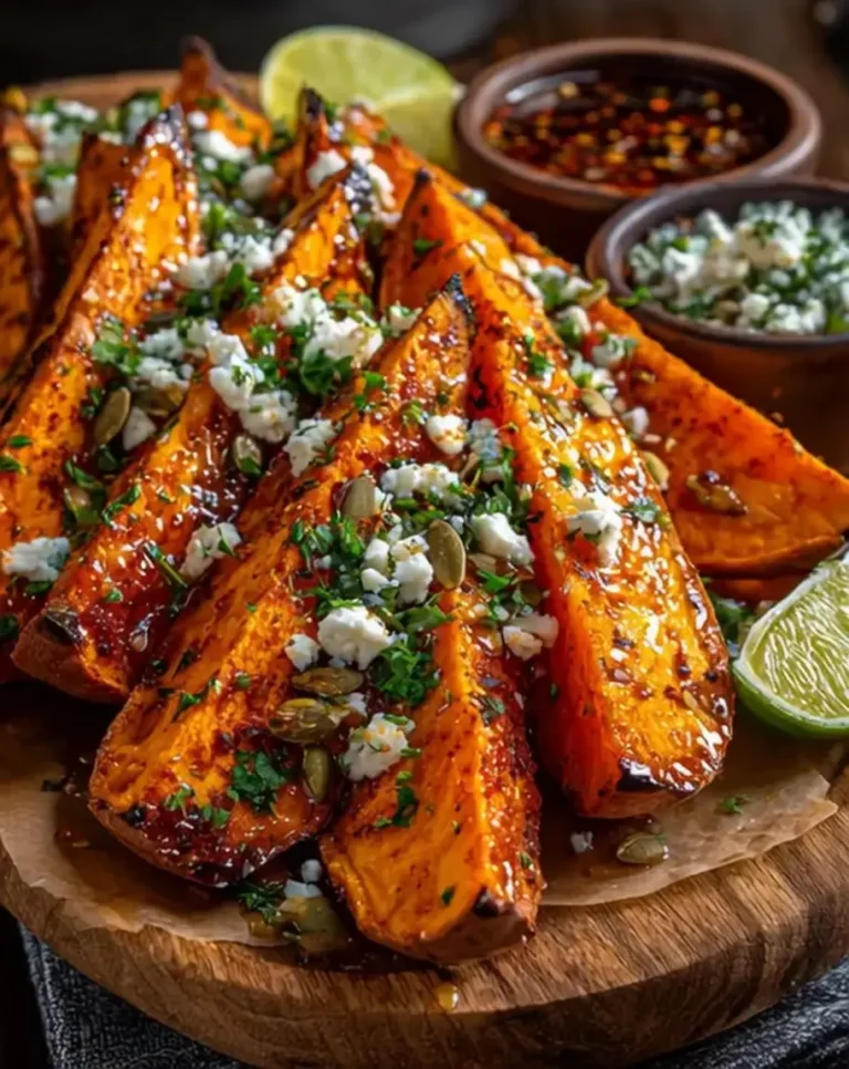 Crispy Roasted Sweet Potato Wedges with Feta and Hot Honey Drizzle – A Spicy-Sweet Sensation