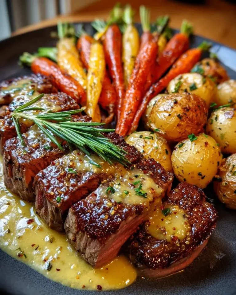 Honey Mustard Glazed Beef Tenderloin with Roasted Carrots & Garlic Potatoes – A Chef’s Masterpiece Made Easy