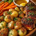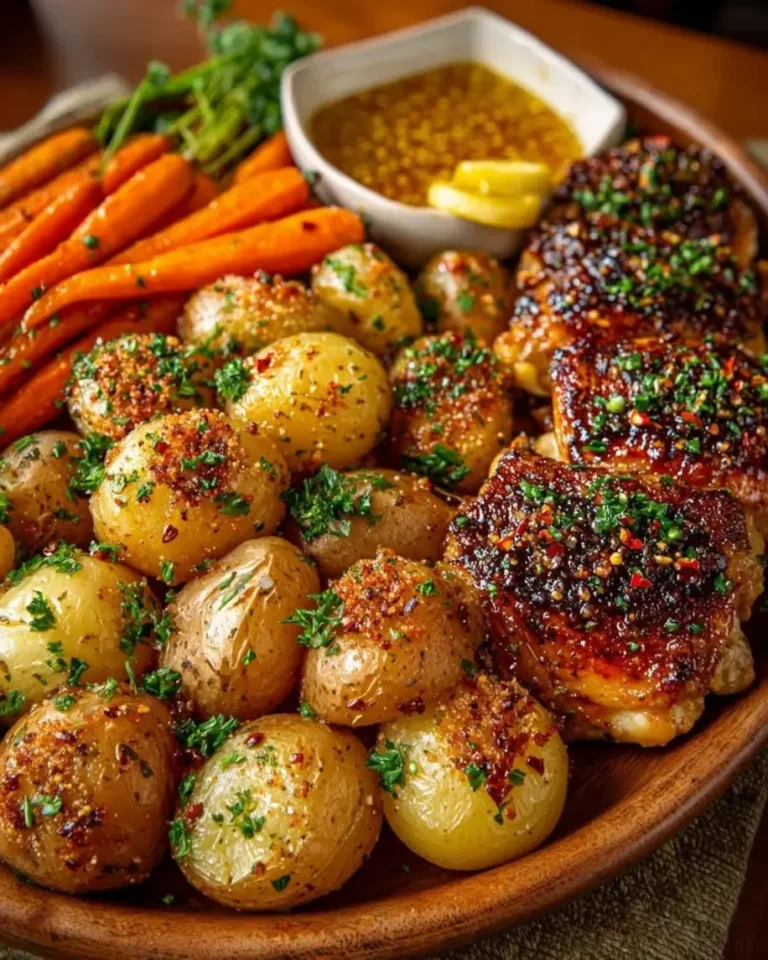 Honey Mustard Glazed Chicken with Roasted Carrots & Garlic Potatoes: A One-Pan Wonder for Busy Weeknights