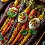 Growing up in my mother’s kitchen in Morocco, vegetables were never just a side dish; they were often the star, vibrant with spices and fresh flavors. When I moved to Paris for culinary school, I learned to elevate these humble ingredients with classical techniques. Today, living in the bustling heart of New York City, I love blending these influences into dishes that truly sing. This recipe for sweet honey roasted rainbow carrots, adorned with creamy burrata and fresh pomegranate, is a perfect example of that journey. It’s an effortlessly elegant dish that brings together the earthy sweetness of perfectly roasted vegetables with the luxurious creaminess of Italian cheese and the tart pop of fruit.