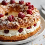 Are you searching for a dessert that’s as visually stunning as it is delicious? Look no further than the Raspberry Almond Paris-Brest! This iconic French pastry, traditionally made with a praline cream, gets a delightful update with the vibrant tang of raspberries and the warm, toasty notes of almonds. Imagine golden, crisp rings of choux pastry, baked to airy perfection, cradling a velvety smooth cream infused with fresh raspberries and rich almond flavor. It’s a sophisticated treat that’s surprisingly achievable in your own kitchen. With an average bake time for choux pastry often around 30-40 minutes, and fillings requiring meticulous chilling, this recipe, though requiring some patience, delivers a truly memorable experience. Today, we’re diving deep into creating this masterpiece, ensuring every bite is a harmonious blend of textures and tastes. Let’s elevate your dessert game with this exquisite Raspberry Almond Paris-Brest!