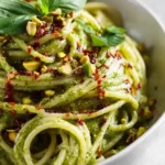 This Pistachio-Avocado Pesto Pasta with Spicy Chili Crunch is more than just a meal; it’s a testament to how creative, healthy, and incredibly delicious plant-forward cooking can be. The creamy avocado base, the satisfying crunch of pistachios, the bright zest of lemon, and the fiery kiss of chili crunch create a symphony of flavors and textures that will leave you utterly satisfied. It’s a dish that looks impressive but is surprisingly simple to make, perfect for impressing guests or treating yourself to something special on a regular Tuesday. So, gather your ingredients, embrace the vibrant green goodness, and get ready to fall in love with pesto all over again!