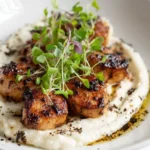The Mushroom Scallops on Truffle Cauliflower Cloud is more than just a meal; it’s an experience. It proves that plant-based cuisine can be every bit as luxurious, satisfying, and visually stunning as its traditional counterparts. The creamy, earthy, truffle-infused cauliflower provides a comforting yet sophisticated base, perfectly complementing the savory, umami-rich sautéed mushroom “scallops.” This recipe is a true celebration of textures and flavors, designed to impress even the most discerning palates. Give it a try and prepare to be amazed by the elegance that vegan ingredients can create! If you make this dish, share your experience with us in the comments below – we’d love to hear about your culinary triumphs!