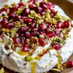 Generously sprinkle the chopped pistachios and pomegranate seeds over the whipped feta. Ensure an even distribution so every bite gets a touch of crunch and juiciness. If you’re using them, add a delicate drizzle of honey or balsamic glaze, and a sprinkle of fresh herbs. Serve immediately with your favorite dippers!