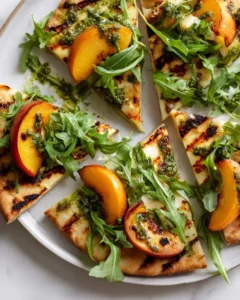 Delicious Grilled Peach and Halloumi Flatbread with Basil Drizzle Recipe