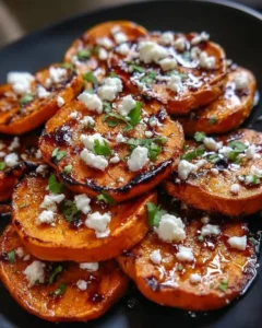 Crispy Roasted Sweet Potato Rounds with Honey and Feta