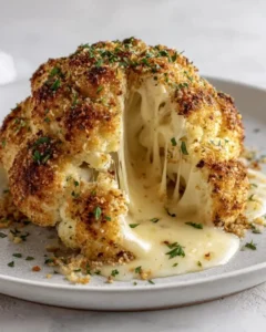 Golden Volcano: Whole Roasted Cauliflower with Cheese Fondue Core