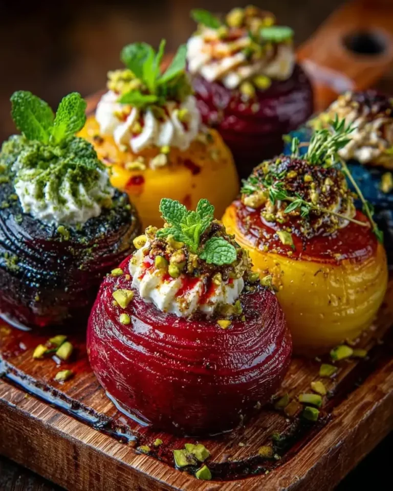 Roasted Beetroot with Whipped Feta, Hot Honey & Pistachio Crunch: A Vibrant Mediterranean Side