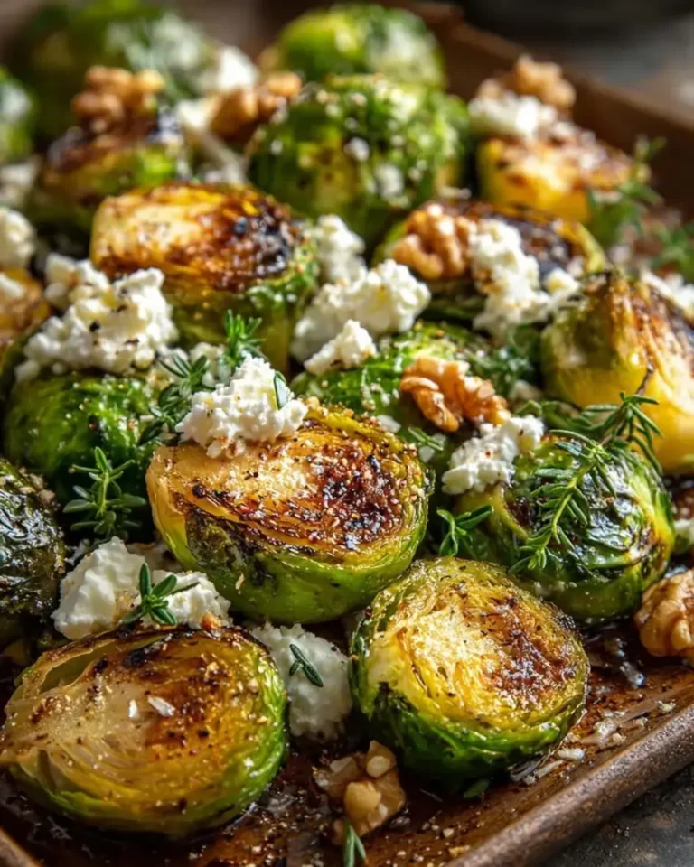 Roasted Brussels Sprouts with Whipped Feta, Hot Honey & Crunchy Walnuts – A Flavor Explosion!