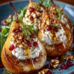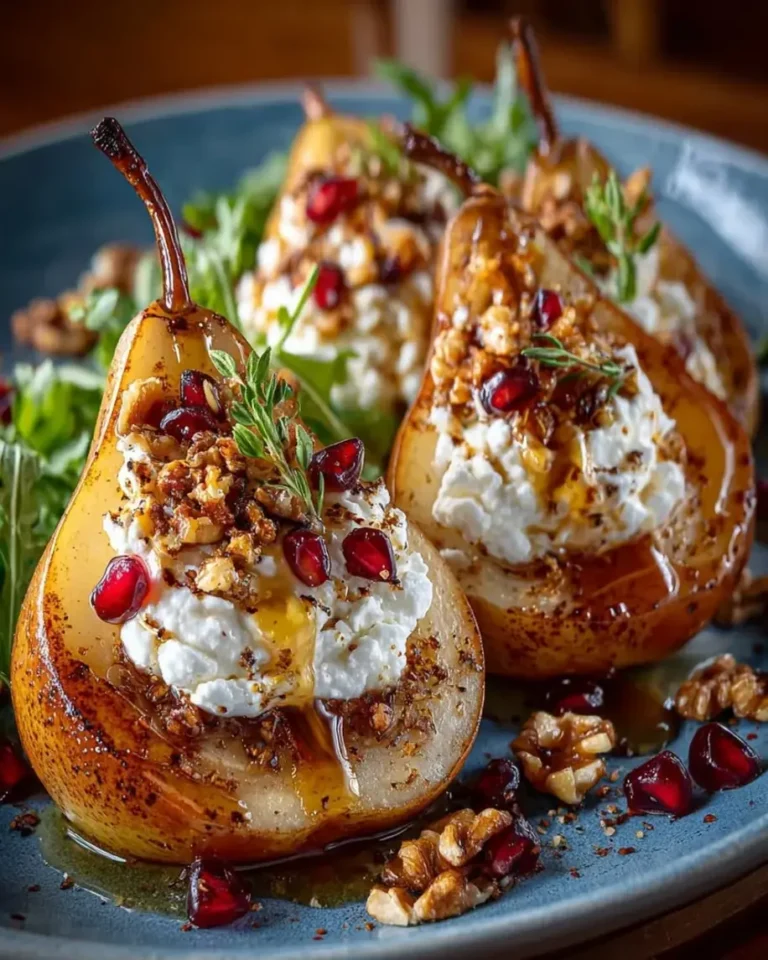 Roasted Pears with Whipped Feta, Hot Honey & Crunchy Walnuts – A Delightful Sweet & Savory Dessert