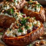 Roasted Sweet Potatoes Stuffed with Whipped Feta, Hot Honey & Crunchy Walnuts – A Sweet & Savory Delight